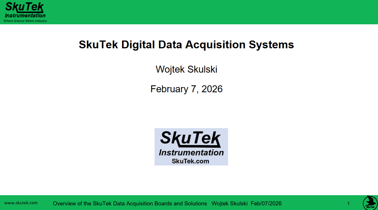 SkuTek Instrumentation is a US-based company that provides advanced high speed event based data acquisition solutions to both domestic and international research communities.